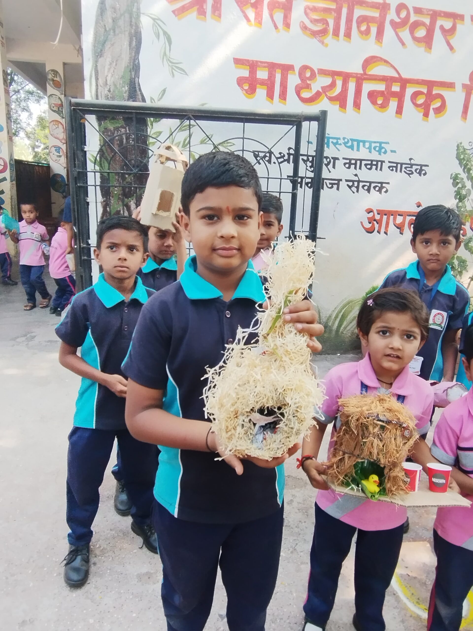 चिमण्यांचा अंगणातील किलबिलाट वाढावा, त्यांचे जीवनचक्र नव्याने सुरू व्हावे, यासाठी शाळेच्या विद्यार्थ्यांमध्ये मध्ये चिमणी – पक्षांबद्दल प्रेम वाढावे यासाठी पक्ष्यांसाठी घरटी तयार करून आणण्यास सांगितले. काही विद्यार्थ्यांनी टाकाऊ पासून टिकाऊ आदींचे घरीच जलपात्र तयार करून घराच्या छतावर तर कुणी खिडकीला किंवा झाडाच्या फांदीला लटकवा व त्यामध्ये पाणी व थोडेसे अन्न टाका असं सांगितले. यासाठी मुख्याध्यापक मुकेश नाईक तसेच चिमण्यांचे संरक्षण ही काळाची गरज उन्हाळ्याच्या दिवसात तापमानात वाढ झाली की, तहानेने व्याकूळ झालेल्या चिमणी पाखरांची तहान – भुक भागविण्यासाठी शाळेचे विद्यार्थी हा उपक्रम राबवीत आहे. आताच्या पिढीला चिमण्यांचा चिवचिवाट कानी पडणे दुर्मीळ झाले आहे. कविता, बडबड गीते, पुस्तकांवरील चित्रे यातच चिमणी शिल्लक राहते की काय, अशी भीती निर्माण झाली आहे. त्यामुळे चिमण्यांचे संरक्षण ही काळाची गरज झाली आहे.