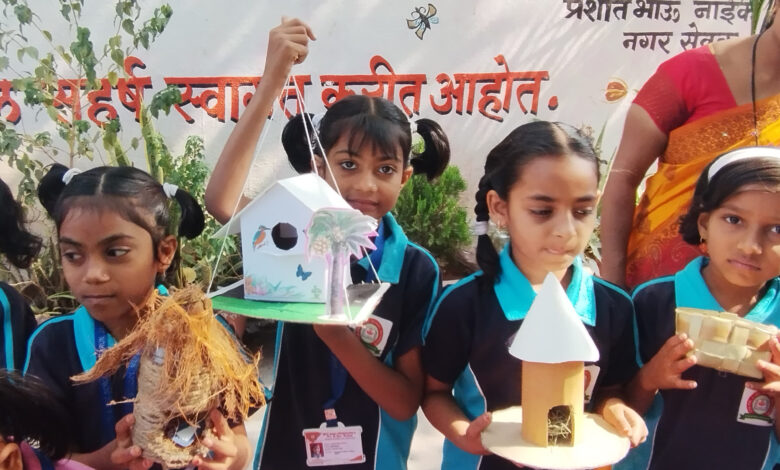 श्री संत ज्ञानेश्वर विद्यालयात जागतिक चिमणी दिनानिमित्त ‘एक घास चिऊचा’