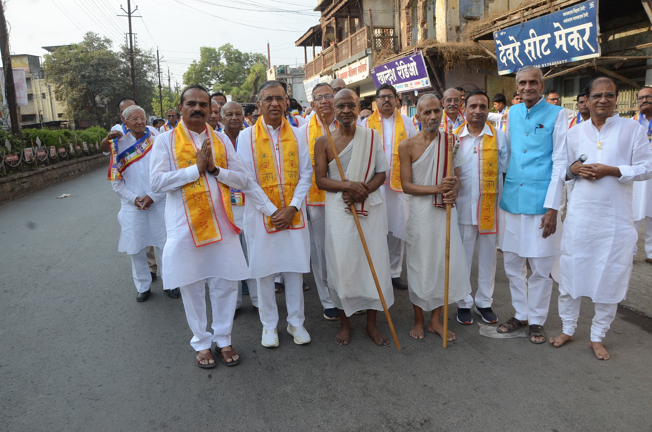 त्यानंतर आचार्य वैराग्यरत्न म. सा., १०८ श्री अनुत्तरसागरजी म. सा. व १०८ श्री सम्यकसागरजी म. सा. यांनी प्रारंभी उदबोधन करत मांगलिक मंत्र दिला. प्रास्ताविक तीर्थंकर प्रभू श्री महावीर स्वामी जन्मकल्याणक समितीचे अध्यक्ष राजकुमार सेठिया यांनी केले.