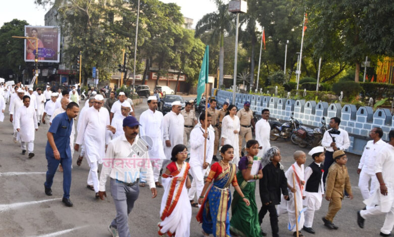 जळगाव, दि.२ (जनसंवाद live): महात्मा गांधी यांचे संपूर्ण जीवन आलौकीक होते. गांधीजींनी तीन तत्वांचा जीवनात आंगीकार केला. त्या तत्वांवरच संपूर्ण जगाला अंहिसेचा मंत्र मिळाला. केवळ उद्योगातच नव्हे तर समाजकारण, राजकारण आणि दैनंदिन जीवनात महात्मा गांधीजींनी नावीन्यतेला (इनोव्हेशन) महत्त्व दिले. प्रत्येक विषयांवर त्यांनी सखोल चितंन केले. मतभेदांवरही ते खुलेपणाने चर्चा करत होते. दुसऱ्यास बदलण्याऐवजी त्यांनी स्वत:मध्ये बदल केला. जसे धागेधागे विणून वस्त्र तयार होते त्याचप्रमाणे माणसांमाणसांना जोडून देश बनतो, असे विचार जिल्हाधिकारी आयुष प्रसाद यांनी प्रमुख पाहुणे म्हणून व्यक्त केले.
