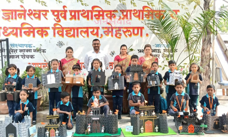 जळगाव, दि.१७ (जनसंवाद live): छत्रपती शिवाजी महाराज जयंती निमित्त इयत्ता पहिली-दुसरीच्या विद्यार्थ्यांनी आकर्षक किल्ले साकारले आहेत. छत्रपती शिवाजी महाराज जयंतीनिमित्त श्री संत ज्ञानेश्वर प्राथमिक व माध्यमिक विद्यालयात इयत्ता पहिली व दुसरीच्या चिमुकल्या विद्यार्थ्यांनी सर्जनशीलतेचा सुंदर आविष्कार सादर केला. कार्डबोर्ड व इतर पुनर्वापर करता येणाऱ्या साहित्याच्या साहाय्याने विद्यार्थ्यांनी आकर्षक व भव्य किल्ल्यांच्या प्रतिकृती तयार केल्या.