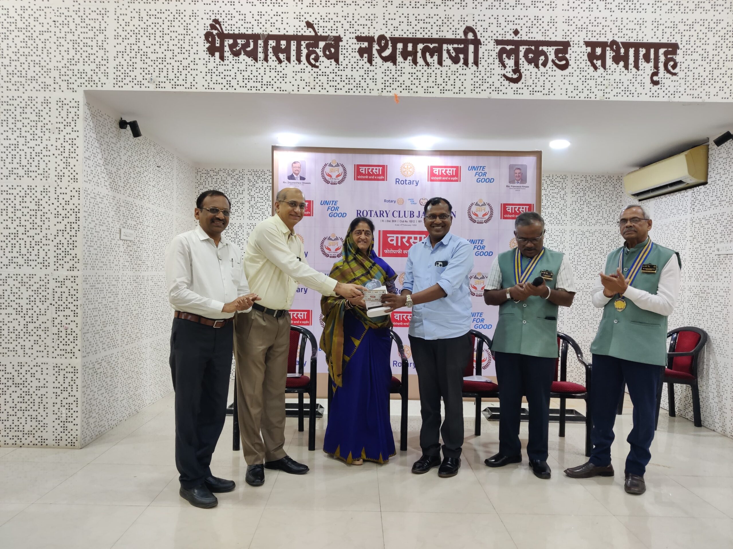 पारितोषकांची घोषणा रोटरी क्लब जळगावचे माजी अध्यक्ष प्रा. पूनम मानूधने, राघवेंद्र काबरा, डॉ. जयंत जहागीरदार, ॲड. प्रवीणचंद्र जंगले, जितेंद्र ढाके, ॲड. सागर चित्रे, माजी सचिव प्रा. शुभदा कुलकर्णी आणि डॉ. मिलिंद वायकोळे यांनी केली. खासदार स्मिता वाघ यांचे स्वागत आदिती कुलकर्णी यांनी केले.