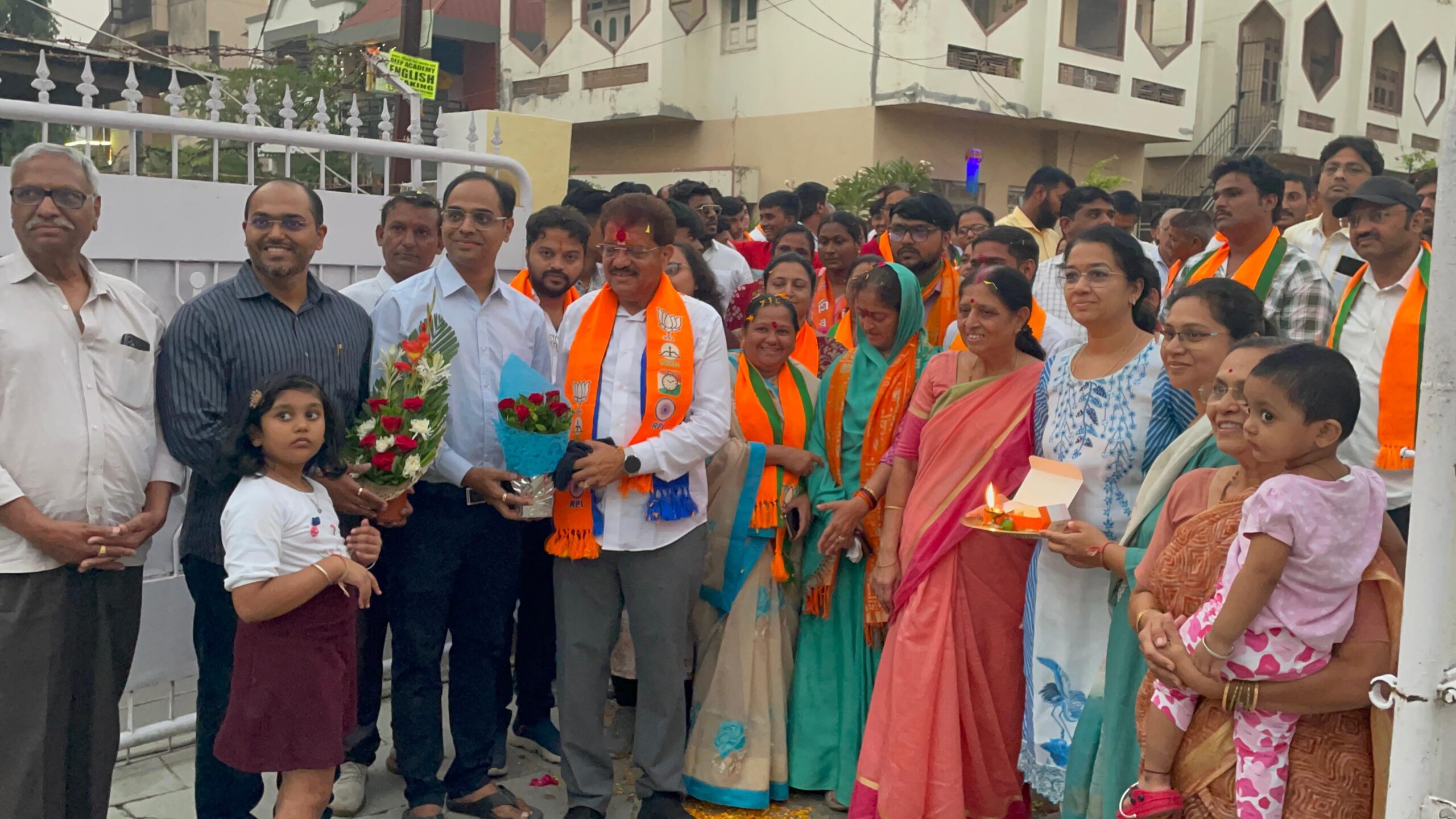 जळगाव, दि. 10 (जनसंवाद न्युज) : शहर विधानसभा मतदारसंघाचे उमेदवार आ. राजूमामा भोळे यांच्यावर छत्रपती शिवाजीनगर परिसरातील दालफळ, हुडको, धनाजी काळे नगर आदी भागांमध्ये नागरिकांनी रांगोळ्या काढून फुलांचा वर्षाव करीत पुष्पहार घालत हार्दिक स्वागत केले. नागरिकांचे हे प्रेम पाहून मला माझ्या कामाची पावती मिळाली, अशी भावपूर्ण प्रतिक्रिया आ. राजूमामा उर्फ सुरेश भोळे यांनी व्यक्त केली.