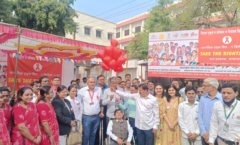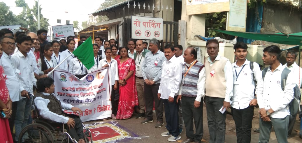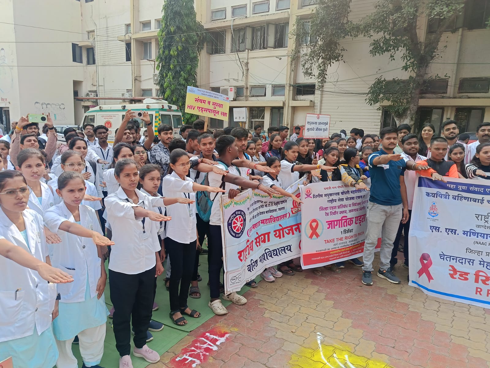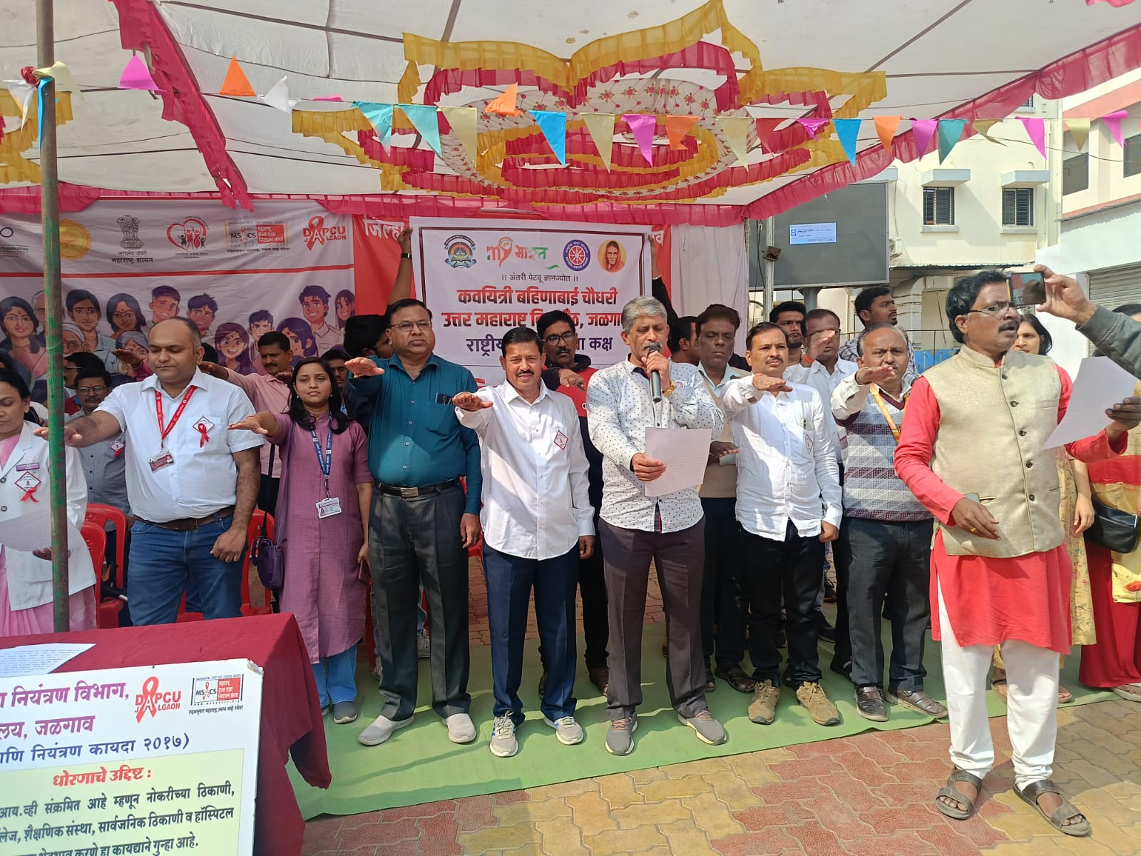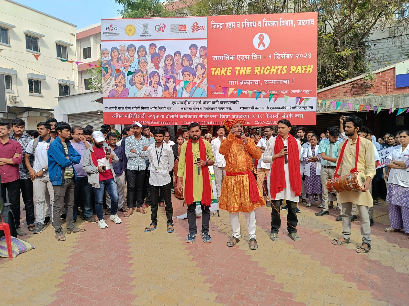 १ डिसेंबर, जागतिक एड्स दिनांचे औचित्य साधून जागतिक एड्स नियंत्रण दिनाच्या निमित्ताने महाराष्ट्र राज्य एड्स नियंत्रण संस्था अंतर्गत राज्यभर आयोजीत होणा-या जागतिक एड्स नियंत्रण दिन व सप्ताहची सुरुवात करण्यात आली. यावर्षीचे “Take the rights path (मार्ग हक्काचा, सन्मानाचा हे घोप वाक्य असून प्रत्येक व्यक्तीने एचआयव्ही / एड्स विषयक जास्तीत जास्त माहिती मिळविणे, एचआयव्ही प्रतिबंधात्मक उपायांचे अनुकरण करणे, एचआयव्ही तपासणी करुन घेणे, आणि त्यासंबधी औषधोपचार मिळविणे हा त्याच्या आरोग्याचा अधिकार आहे. त्या अनुषंगाने जागतिक एड्स दिनानिमित्त जिल्हा एड्स नियंत्रण व प्रतिबंधक समिती, सामान्य रुग्णालय, जळगांव यांच्या तर्फे जागतिक एड्स दिनाच्या निमित्ताने प्रभातफेरी, पोस्टर्स प्रदर्शनाचे व पचनाटयाचे विशेष आयोजन शासकिय वैदयकिय महाविदयालय व रुग्णालय आवारामध्ये करण्यात आले होते.