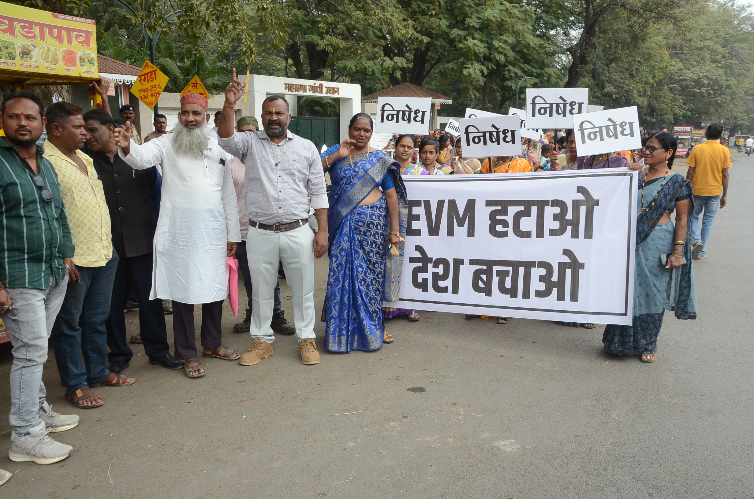 जळगाव, दि.4 (जनसंवाद न्युज): जळगांव शहर विधान सभा मतदार संघात झालेल्या निवणूकीत मतदानासाठी वापरण्यात आलेल्या ईव्हीएम मशिनवर हरकत घेत बुधवारी जन आक्रोश मोर्चा काढण्यात आला, शहरातील महात्मा गांधी उद्यानापासुन ते जिल्हाधिकारी कार्यालयापर्यंत हा मोर्चा काढून संबंधित अधिकाऱ्याला निवेदन देण्यात आले. त्यात म्हटले आहे की, आता पार पडलेल्या १३ जळगांव शहर विधान सभा मतदार संघात ची प्रक्रिया झाली त्यामतदान प्रक्रियेत जे इलेक्ट्रानिक मशिन (E.V.M., C.U., B.U., V.V. Pat) वापरण्यात आले त्याआधारावर जो निकाल देण्यात आला हा पूर्णपणे संशयास्पद असून आमची त्याला हरकत असून त्याबाबत तिव्र निषेध आहे.