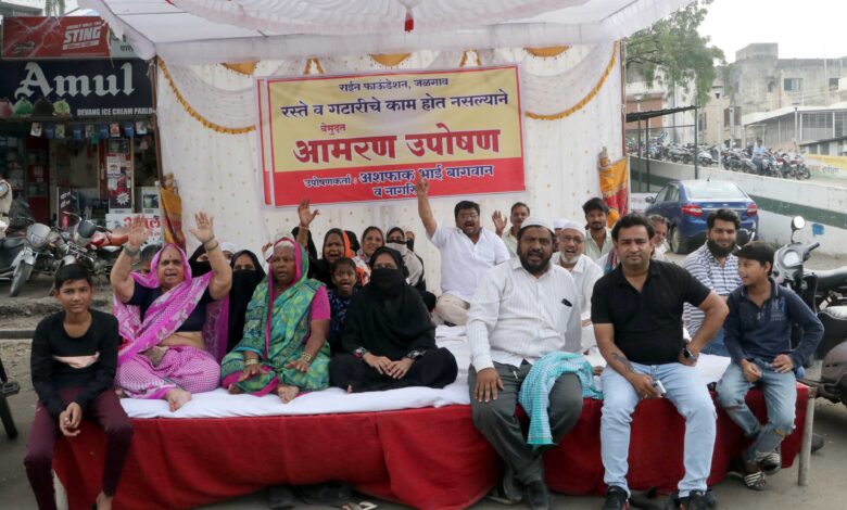 जळगाव, दि. 4 (जनसंवाद न्युज): बागवान मोहल्ला परीसर, जोशीपेठ भागात रस्त्यावरील गटारीचे पाणी गेल्या अनेक दिवसांपासून रस्त्यावर येत आहे. वारंवार निवेदन देवून देखील यावर कुठलीच कारवाई झालेली नसल्याने अशफाक बागवान यांच्या नेतृत्वात बुधवारी महानगर पालिकेसमोर परीसरातील नागरीकांनी आमरण उपोषण सुरू केले आहे. बागवान मोहल्यातील बॉम्बे हार्डवेअर जवळील रस्त्यावरील गटारीचे पाणी गेल्या अनेक वर्षापासून रस्त्यावर व सर्वत्र वाहत असून त्यामुळे रोगराईची प्रचंड समस्या निर्माण झालेली आहे. तसेच नागरीकांना ये जा करणेसाठी देखील मोठ्या प्रमाणात गैरसोय होत आहे.